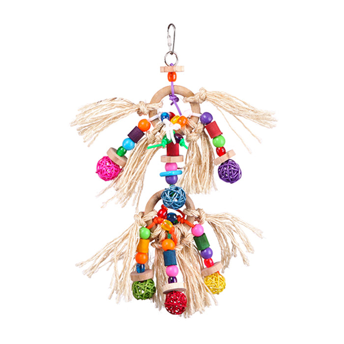 This toy provides textures and shapes that birds may encounter in the wild. It's designed to suit various sizes and cages, creating surfaces birds can climb or peck, which is great for their muscular development.