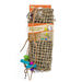 Penn Plax Natural Weave Playground Climbing Mat is a climbing net made from a combination of Naturaly selected woven grass accompanied by naturaly dyed wood pieces skewed through cotton ropes or leather strips. This delightful climbing toy will bring out the natural chewing habits of any companion birds and parrots. Keeping your feathery friend occupied through mental stimulation of their natural chewing behaviore & stuffed full of dried grass, hours of entertaining joy and fun.