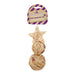 Made from 100% natural materials with no glues or metals. The rattan star sits atop two woven, water hyacinth balls (much loved by pets and owners). Hang as one toy or remove the cord to have three separate toys.